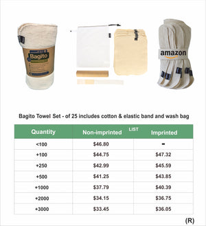 100% natural waffle cloth cotton. Fits all standard paper towel holders. 500+ uses per towel (save $350/year when compared to single-use paper towels.) Mesh wash bag included. Custom imprinting available on canvas portion of elastic strap.