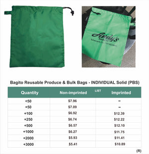 Available one one side of Produce/Bulk Bags, one color max. Max imprinting area: 8" x 8"