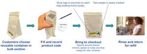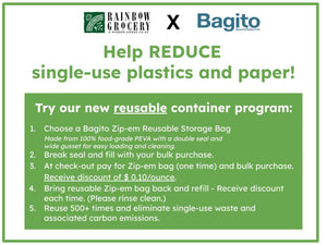 Bagito's new reuse for the bulk aisle program provides retailers with a complete program to support reusable bulk purchasing in reusable containers.